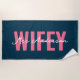 Wifey Blue Pink Monogram Script Beach Towel