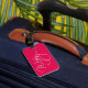 What a great luggage tag. It is just the right size, the print is very clear and the color & design stand out - it really helps in identifying the luggage on the baggage carousel. The printing is great. Name is clear and large enough to see while the print on the reverse side is smaller, just what you want so your address and phone number are not glaring for people who do not need to see that.