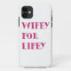 iPhone case in white with hot pink 'wifey for lifey' in chalkboard style writing.