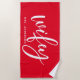 Show off your newlywed status with this bold "Wifey" beach towel in red and white, perfect for honeymoons, beach days, or relaxing by the pool. Designed for brides and newlyweds, this towel can be personalised with a last name, making it a thoughtful gift or stylish accessory. Whether for beachside relaxation or poolside fun, it’s a chic way to celebrate your love.