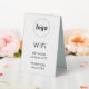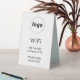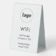 Easily add your own logo and WiFi network and password details for your employees, staff, clients and customers. Minimalist and professional to promote your brand. Change the background colour to match your branding. Perfect for a store, office, shop,restaurant, bar, bistro, cafe, hotel or any small business offering free WiFi.
