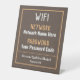 WiFi instructions sign for customers, patrons, and guests. Use in bed and breakfast, guest house, Airbnb, restaurants, cafes or hotels. Sign for customers, visitors, and tourists etc. Brown and orange.