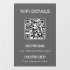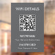 A modern and minimalist WiFi sign designed for businesses, hotels, restaurants, and Airbnb accommodations. Easily customise with your WiFi name, password, and QR code for a seamless guest experience. Ideal for reception areas, cafes, and offices, allowing visitors to connect instantly by scanning the QR code.