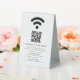 A small simple instructional sign in black and white to help your guests or patrons get connected with space at the top for your own logo or use the simple wifi symbol logo provided instead and add your own QR Code photo (a version is also available for you to create your own). Using a QR code fr guests to scan makes it quick and easy for your guests to connect. Help keep your guests informed and wifi connected, with this simple text instructional signage, simply add in your own network name and wifi access passcode. Ideal to add to guest bedrooms, hotel accommodation, holiday home rentals, Airbnb's, shops, cafes, and restaurants. Logo and design by www.mylittleeden.com on Zazzle.