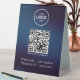 Elevate your space with a modern table sign that makes WiFi access seamless and stylish. Upload your custom QR code and logo, and add your network name and password in elegant white lettering. This eye-catching sign offers convenience for guests, clients, and customers, blending practicality with a sleek design.