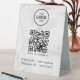 Elevate your space with a modern table sign that makes WiFi access seamless and stylish. Upload your custom QR code and logo, and add your network name and password in elegant white lettering. This eye-catching sign offers convenience for guests, clients, and customers, blending practicality with a sleek design.
