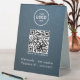 Elevate your space with a modern table sign that makes WiFi access seamless and stylish. Upload your custom QR code and logo, and add your network name and password in elegant white lettering. This eye-catching sign offers convenience for guests, clients, and customers, blending practicality with a sleek design.