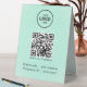 Elevate your space with a modern table sign that makes WiFi access seamless and stylish. Upload your custom QR code and logo, and add your network name and password in elegant white lettering. This eye-catching sign offers convenience for guests, clients, and customers, blending practicality with a sleek design.