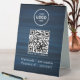 Elevate your space with a modern table sign that makes WiFi access seamless and stylish. Upload your custom QR code and logo, and add your network name and password in elegant white lettering. This eye-catching sign offers convenience for guests, clients, and customers, blending practicality with a sleek design.