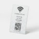 Elevate your space with this minimalist modern table sign, offering a hassle-free way for guests to connect to your WiFi. Upload your personalised QR code and logo, and seamlessly display your network name and password in crisp white lettering. A stylish, functional touch for any setting—perfect for businesses, cafes, or events.