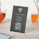 Elevate your space with this minimalist modern table sign, offering a hassle-free way for guests to connect to your WiFi. Upload your personalised QR code and logo, and seamlessly display your network name and password in crisp white lettering. A stylish, functional touch for any setting—perfect for businesses, cafes, or events.