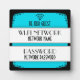 Clear square sign for wifi connection details for a guest bedroom or a place of business. The colour can be changed to match your own decor.