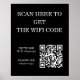 Upgrade your space with this sleek black QR code WiFi poster designed to provide fast and easy internet access for guests and customers. Featuring a clear “Scan Here to Get the WiFi Code” message, this modern design is perfect for cafés, salons, offices, co-working spaces, Airbnb rentals, and waiting areas. The black background adds a professional, minimalist aesthetic that fits seamlessly into any stylish environment while helping your QR code pop for instant scanning and connection. Functional, eye-catching, and essential for today’s digital world.