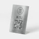 Modern and simple brushed silver faux metallic table top pedestal sign to allow your customers, clients and guests to easily connect to your wifi network. Upload your QR code and logo and add any other details, such as the network name and password.