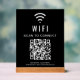 Modern black acrylic sign to allow your customers, clients or guests to easily connect to your wifi network. Upload your wifi's QR code and add any other details, such as the network's name and password in simple white typography. Perfect for offices, hotels, vacation rental properties, etc.