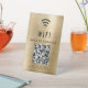 Modern and simple brushed gold faux metallic table top pedestal sign to allow your customers, clients or guests to easily connect to your wifi network. Upload your wifi's QR code and add any other details, such as the network's name and password. Perfect for offices, hotels, vacation rental properties, etc.