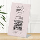 This blush pink pedestal tabletop sign provides a clean and modern way for customers or guests to access your wifi network instantly. The design features a central QR code area that can be linked to your wifi details so users can scan to connect without typing a password. Above you can upload your business logo and below enter your network name and any custom instructions that fit your need. The minimalist layout keeps everything readable which works well for cafes, salons, studios, offices, rental properties, pop ups or event venues. Because the template is fully editable, it adapts easily to branding updates or new wifi information. A practical and polished solution that helps streamline customer access and elevates your in person experience.