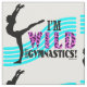 Gymnastics fabric featuring a gymnast posing and the text, "I'm Wild About GYMNASTICS!". The word "Wild" has a cheetah print pattern on it.