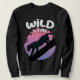 Illustration of a black panther silhouette walking on a jungle tree in front of a pink sunset.