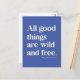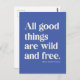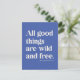 Wild and Free Inspirational Positivity Quote Blue Postcard