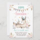 Invite your friends to celebrate your little wild one's birthday with this cute deer birthday invitation featuring a deer, bird, and pretty flowers.