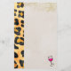 Stationery with a wild animal pattern and a cool looking wine glass outlined in thick black ink. The wine inside the glass is hot pink An eye-catching colour contrast. Faux gold glitter is also sprinkled along the top of the design.