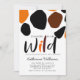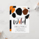 Get your bachelorette party started with modern invitations featuring wild animal oversized pattern in black and orange with decorative custom matching colours script "wild" and all information in elegant font ready for easy customisation.