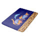 A bath mat designed with an exotic orange coloured leopard print border along the bottom. Illustrated with a digital watercolor image of a herd of wild animals
