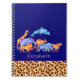Spiral notebook designed with an exotic orange coloured leopard print border along the bottom. Illustrated with a digital watercolor image of a herd of wild animals