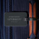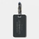 Elegant watercolor botanical luggage tag features your single initial monogram and name in classic off-black lettering, framed by icy winter blue leaves and foliage. Personalise the reverse side with your contact information in white lettering on a coordinating deep charcoal background.