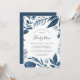 Our elegant Wild Azure bridal shower invitation features your bridal shower details in off-black block and calligraphy script lettering, framed by painted watercolor foliage in icy winter shades of blue.