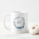 Custom mug features a blue and white watercolor botanical wreath with "bride" inscribed inside in hand lettered script. Personalise with your wedding date beneath. Pick up a matching set for your entire bridal party for a perfect "getting ready" photo the morning of the wedding! Matching Mother of the Bride, Mother of the Groom, Bridesmaid and Maid of Honour mugs available in our Wild Azure collection.