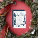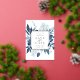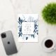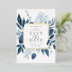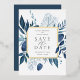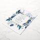 Our Winter Azure wedding save the date frames your wedding details with an elegant square border of icy watercolor foliage in shades of navy and dusty blue, with real gold foil trim on a crisp white background. A modern and elegant take on the botanical trend.