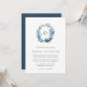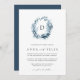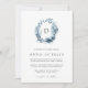 Our Wild Azure monogram wedding invitation features your single initial monogram at the top, encircled by an oval wreath of winter watercolor foliage in icy shades of blue. A modern and elegant take on the botanical trend for winter weddings in chic blue and white.