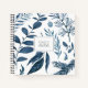 Elegant botanical logo notebook design features your name and/or business name framed by a border of lush watercolor greenery and leaves in shades of navy and sky blue. Coordinates with our Wild Azure collection of stationery, invitations and business accessories.