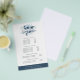 Chic botanical flyer card design displays your services, price list or business information beautifully. Design features a watercolor foliage logo in navy and sky blue, framing your name and/or business name on a crisp white background with harbor blue trim. Includes four customizable headings and body text fields, and space for your business contact information along the bottom. To adjust layout, enter your text and then use the Customize function to change positioning and font sizes.