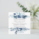 Our Wild Azure rehearsal dinner invitation in a unique square format frames your ceremony rehearsal and celebration details with a top and bottom border of winter watercolor foliage and leaves in icy shades of blue.