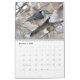 The birds pictured are in order of months: Tufted titmouse, female Cardinal, American Robin, Black-capped Chickadee, Grey Catbird, male Cardinal, American Goldfinch, Ruby-throated Hummingbird, House Sparrow, Dark-eyed Junco, Downy Woodpecker, and White-breasted Nuthatch.