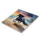 Black stallion horse galloping on the beach, beautiful watercolor painting.