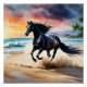 Wild black stallion galloping poster