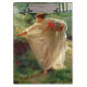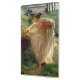 This design features a painting by the English artist Sir Edward John Poynter (1836–1919), who served as President of the Royal Academy of Arts. It shows a lovely young woman who is wearing a diaphanous cream-coloured dress made out of thin fabric. The contours and curves of her beautiful body can be seen through the clothing. The woman is walking in a rural idyll as she collects some red flowers that are growing on the hillside. She has a basket in one hand that she is using to gather the bright colourful flowers that she has collected. It is an incredibly impressive depiction of feminine beauty and the delights of nature. There is grass growing on the hills and fills surrounding the young woman, and there is a cluster of trees growing on the horizon. The original artwork was painted by Edward Poynter in 1880.