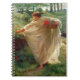 This design features a painting by the English artist Sir Edward John Poynter (1836–1919), who served as President of the Royal Academy of Arts. It shows a lovely young woman who is wearing a diaphanous cream-coloured dress made out of thin fabric. The contours and curves of her beautiful body can be seen through the clothing. The woman is walking in a rural idyll as she collects some red flowers that are growing on the hillside. She has a basket in one hand that she is using to gather the bright colourful flowers that she has collected. It is an incredibly impressive depiction of feminine beauty and the delights of nature. There is grass growing on the hills and fills surrounding the young woman, and there is a cluster of trees growing on the horizon. The original artwork was painted by Edward Poynter in 1880.