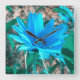 Gorgeous Turquoise blue sunflower on this wall clock (your choice of size and style)