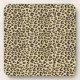This elegant beverage coaster features a high-impact leopard print pattern in classic neutral tones. The design uses bold black spots with a subtle brown/tan shadow on a warm cream or beige background, creating a sophisticated wildlife aesthetic.