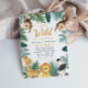 A jungle safari theme invite with wild animals and jungle foliage. The colours and text can be personalised.