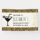 A bachelorette party welcome banner with a stylish pattern. Exotic black leopard spots on a gold background. Wild yet elegant style. A black silhouette martini glass adds a party flair to the design. Gold confetti image along the side.