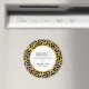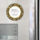 A bachelorette party thank you magnet with a stylish pattern. Exotic black leopard spots on a gold background. Wild yet elegant style. Layered over top is a white circle frame with a faux gold foil border, with your personalised text inside.
