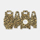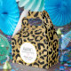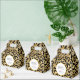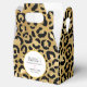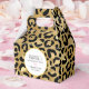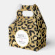A favour box with a stylish pattern. Exotic black leopard spots on a gold background. Wild yet elegant style. A white coloured circle frame with a faux gold foil border layered over top with your personalised text inside.