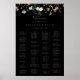 This wild floral black alphabetical seating chart is perfect for a rustic wedding. The design features watercolor pink, blush, purple, navy and white elegant flowers with emerald green leaves in a dark background.
