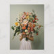 Cute young girl holding a huge bouquet of wild botanical meadow flowers in front of her head
